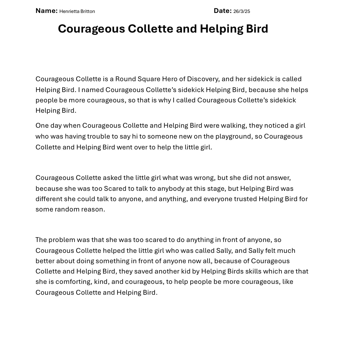 Courageous Collette and Helping Bird